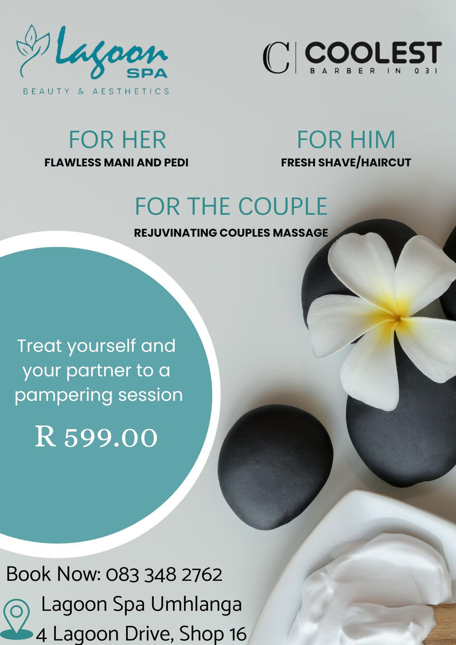 Imagine escaping to a world where the gentle rhythm of the ocean washes away your stress. That's Lagoon Spa. Nestled in the heart of Umhlanga, with breathtaking ocean views, we've created a haven of tranquility for your mind, body, and soul.At Lagoon Spa, we believe in personalized luxury. Our team of expert therapists is dedicated to providing exceptional, results-driven treatments tailored to your unique needs. From indulgent massages and revitalizing facials to specialized therapies like aromatherapy and hot stone treatments, we offer a complete wellness experience.Step into our elegant, serene space and let us pamper you. Our private treatment rooms, premium products, and expert techniques ensure every visit is a journey of pure relaxation. Whether you're seeking a solo escape or a memorable experience with loved ones, we offer customized packages for bridal showers, birthdays, or simply a day of self-care.Lagoon Spa is more than just a spa; it's your personal retreat. Discover the art of pampering and embrace the harmony of well-being. We invite you to experience the Lagoon Spa difference.